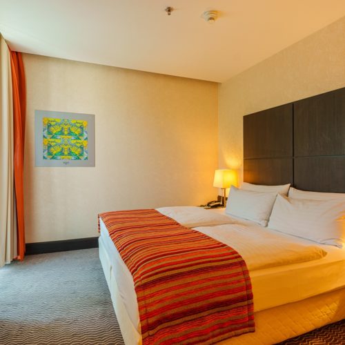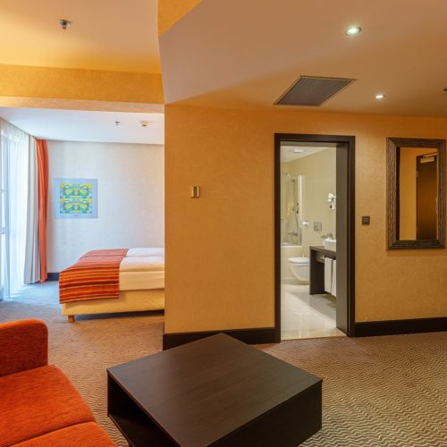 Comfortable EXECUTIVE rooms are located on the 3rd floor. Compared to the STANDARD room, this room type is additionally equipped with a large LCD TV, adjustable work chair, luxury cosmetics, trouser press, bathrobe, and slippers.